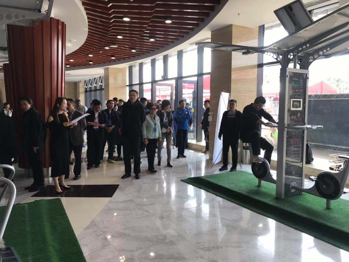 2019中国(德州)体育产业交流大会共分为四大板块,分别为中国体育用品业联合会(德州)体育产业论坛、重点企业参观调研、赛事、创新型体育产品展览。bwin·必赢二代智能路径、爱动超级体测机、碳纤维自行车、碳纤维体操器材、负离子草坪等产品成为创新型体育产品成果展览上的焦点。