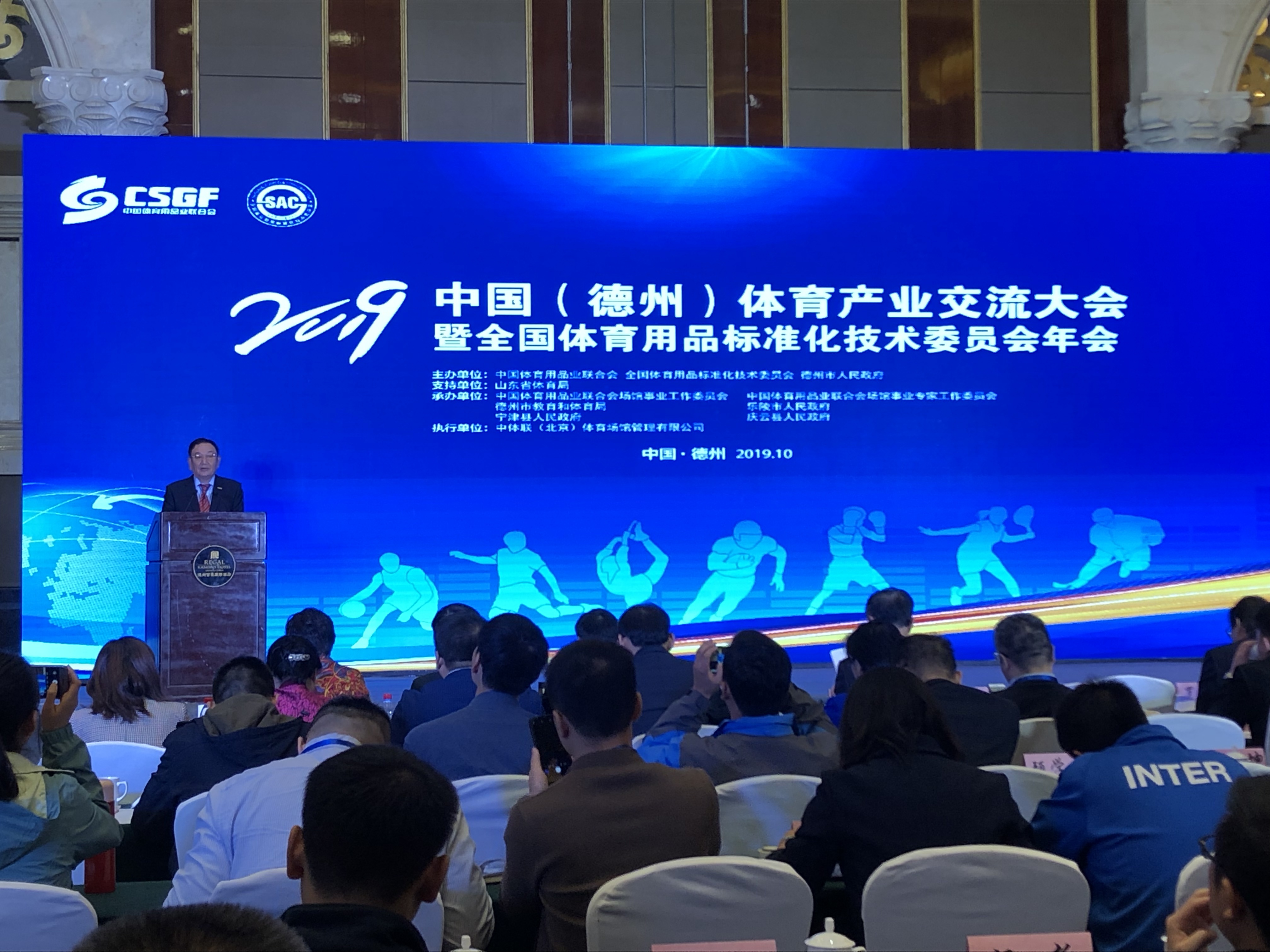 10月13日,2019中国(德州)体育产业交流大会在太阳能德州小镇开幕。大会由中国体育用品业联合会与德州市人民政府联合主办,山东省体育局支持,中国体育用品业联合会场馆事业工作委员会等单位共同承办。大会在 “融入京津冀助力新动能”的大背景下,以“德州智造·标准引领,助力体育产业升级”为主题,旨在充分展示区域体育产业发展成果,促进国际国内体育产业交流,扩大招商引资规模,搭建品牌商、渠道商和消费者展示与互动平台。开幕式上,bwin·必赢产业集团荣获“明星企业”称号。